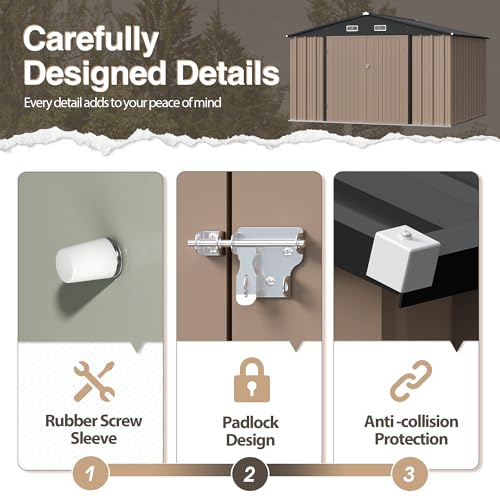[ Sloped Roof and Lockable Door ]: The pitched roof of the metallic backyard shed not solely prevents rust attributable to rainwater gathering, but in addition supplies extra space for storing. Lockable doorways successfully improve safety and stop lack of your belongings.