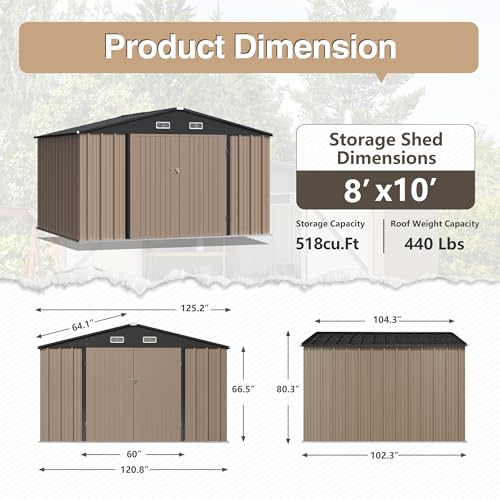 Specification: Homall Outside Storage Shed, 8 x 10 FT Steel Backyard Sheds & Outside Storage Home with Single Lockable Door for Yard Backyard Patio Garden