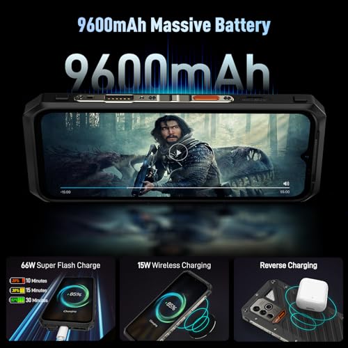 🎅【9600mAh Battery + 66W Fast Charging】Support 66W super fast charging, the 9600mAh battery of this cell phone can be charged to 20% in just 10 minutes, which is 60% faster than a regular 20W. Also support 15W wireless charging(Qi Standard) and wireless reverse charging.
